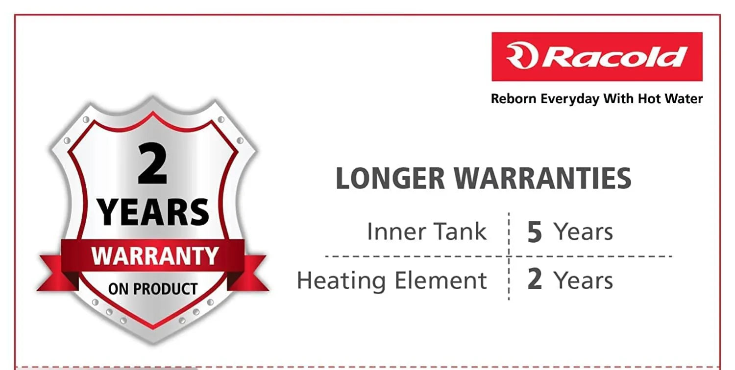 * 2 Years Product Warranty, 5 Years Warranty in Inner Tank & 2 Years Warranty in Heating Element